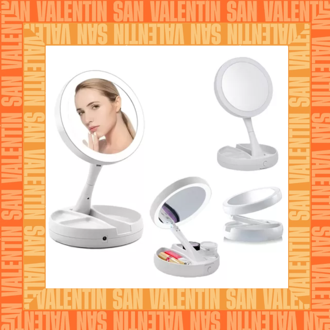 Espejo Plegable LED XJ‑988 – Espejo de maquillaje con luz LED, doble cara y aumento 1X y 10X ideal para tu rutina de belleza diaria y viajes.